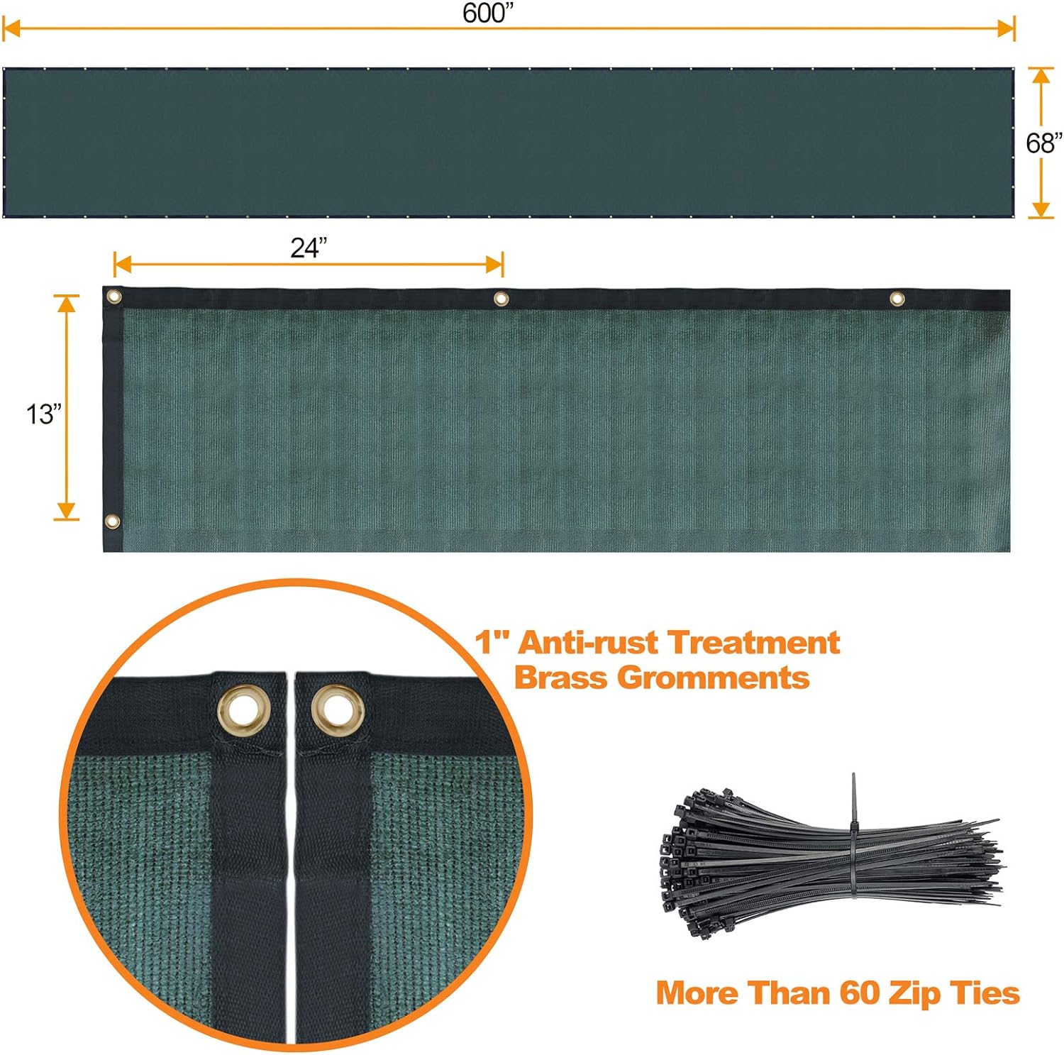 PERFECT SIZE & WEATHER RESISTANT MATERIAL: Green chainlink fence privacy screen measures exactly 50' long x 5'8″ tall, this privacy fence screen 6×50 is perfect fit for a fence that’s 6 ft tall; wind screen fabric weave of new high density material waterproof polyethylene; shade tarp with grommets allows maximum air to go through to create breeze, greatly reduces wind at ground level; great privacy screening at right angles; sunshade prevents harmful UV sun lights from damaging for up to 90%.
